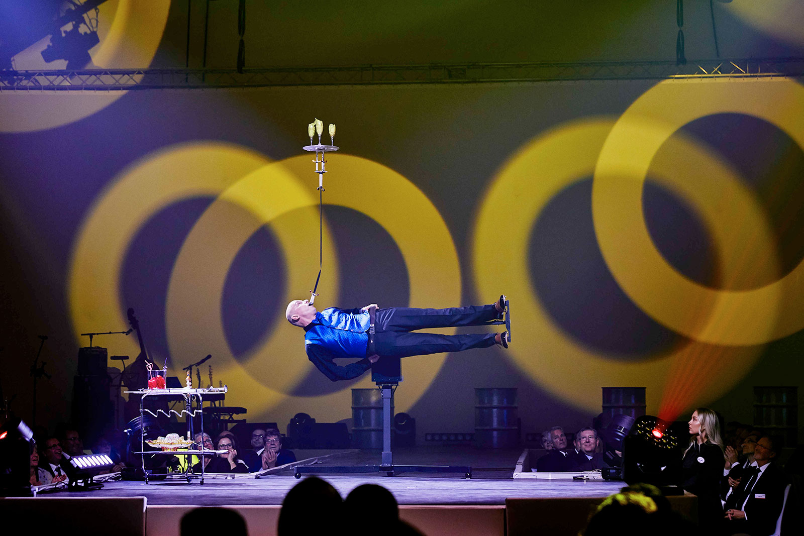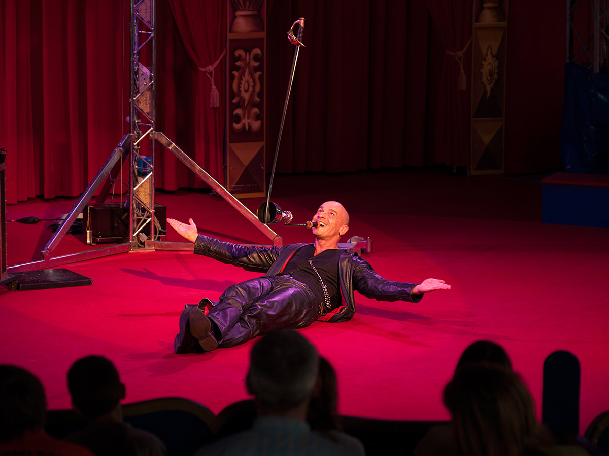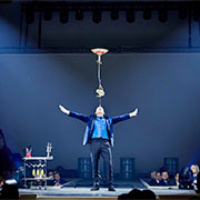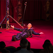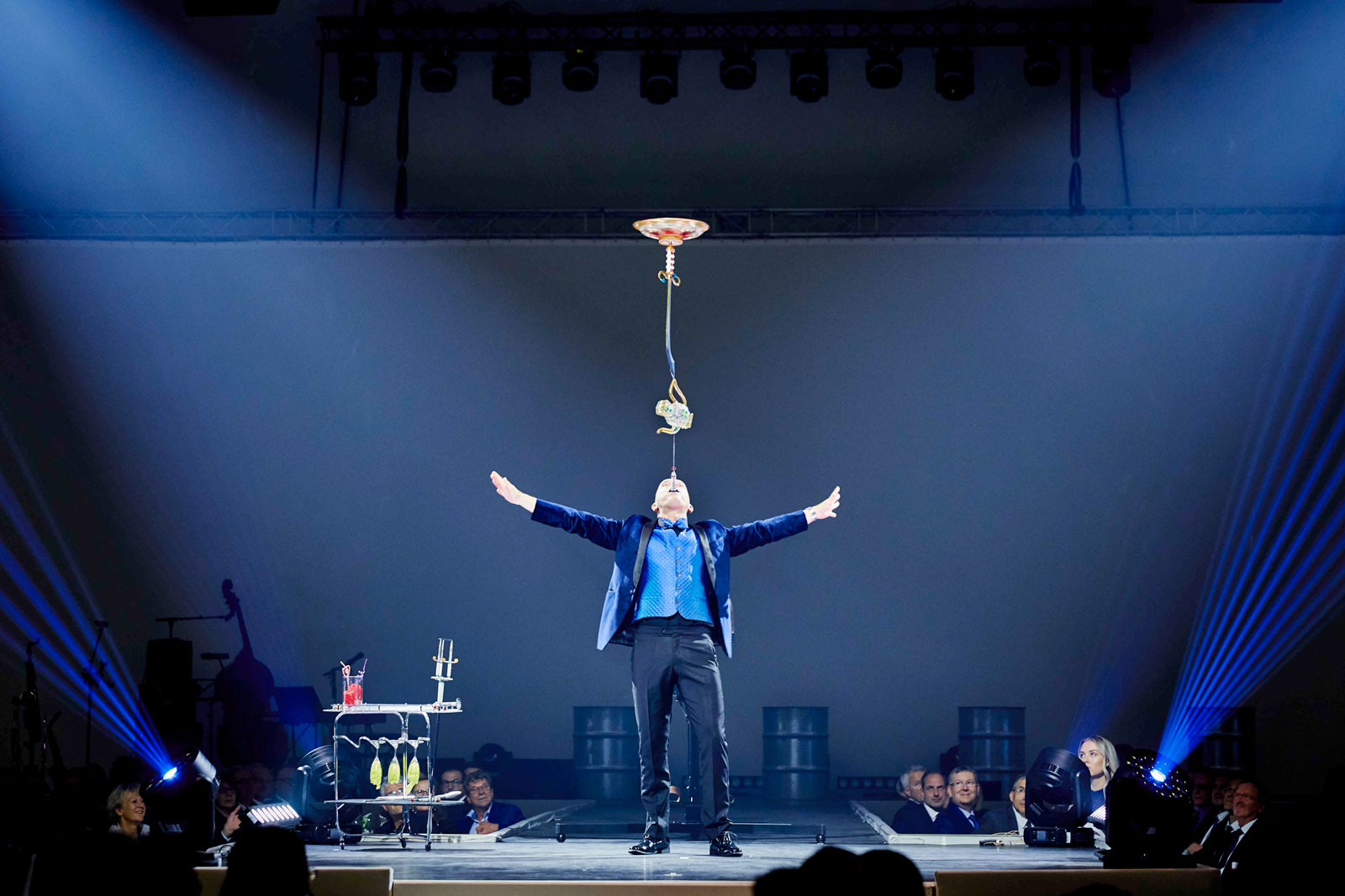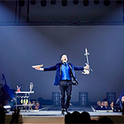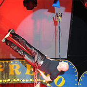 Die Variante „Balance 50ies Style“ kombiniert in einer dynamischen und eleganten Präsentation originelle Glasbalancen mit dem Looping. Ideal für klassisches Varieté, Spiegelzelt und Dinnershow.